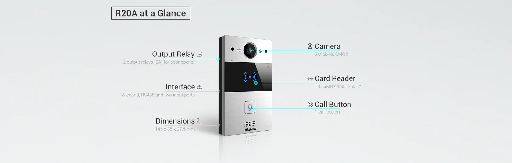 Akuvox R20A PoE Palm-Sized Door phone and Proximity Card Reader With Built-In 2MP Security Camera